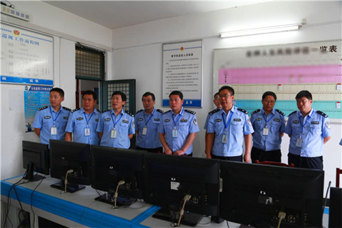 陳鳳祥在看守所監(jiān)管大隊長郭景靈、教導(dǎo)員譚林生的陪同下,參加了集體交接班,并先后來到收押大廳、監(jiān)控室、巡視道、監(jiān)區(qū)、監(jiān)控中心等重點部位進(jìn)行了實地查看,要求全體監(jiān)所民警嚴(yán)格落實各項管理工作制度,全力保障監(jiān)所安全。