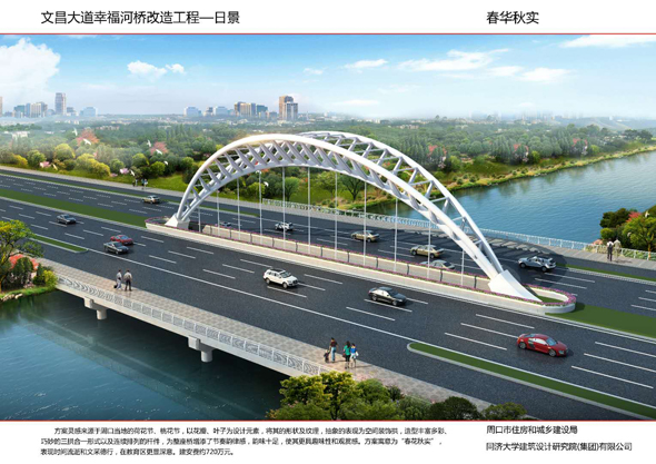 周口大道沙潁河橋景觀改造,設(shè)計(jì)造型簡單柔美,如行云流水,同時(shí)與沙潁河景觀帶相融合,給城市增添了生機(jī)與活力。周口大道賈東干渠橋以荷葉為設(shè)計(jì)元素,造型簡約而不失細(xì)節(jié)。周口大道流沙河橋造型簡潔大氣,線條流暢,像一條青龍游弋在水面上。文昌大道幸福河橋以花瓣、葉子為設(shè)計(jì)元素,造型豐富多彩。文昌大道流沙河故道橋在中分帶位置修建花壇,花壇造型莊重古樸,景石造型端莊沉穩(wěn)。太清路流沙河橋以古建斗拱、窗花為元素,造型儒雅大方。太清路洼沖溝2號(hào)橋以“輻轂相依”為名,既融合環(huán)境,又有團(tuán)結(jié)、合作的寓意。太清路賈魯河橋,增加了景觀造型,使人們可以重溫當(dāng)年賈魯河的美好畫卷。彭新莊橋以柳葉為元素,預(yù)示著留住賓客與送別親友的不舍之情的雙重含義。