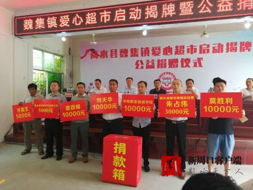 7月17日上午,商水縣魏集鎮(zhèn)舉行“愛心超市 ”啟動(dòng)揭牌暨公益捐贈(zèng)儀式。來自全鎮(zhèn)各地的企業(yè)單位代表40多人向“愛心超市”捐款30多萬元。