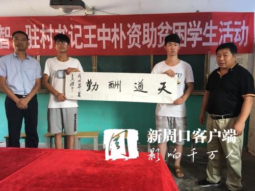 “駐村書記王忠樸,關(guān)心教育真資助。一高一人伍佰元,家長(zhǎng)學(xué)生笑開顏。扶貧工作先扶智,真是黨的好同志。虎崗教育爭(zhēng)上游,來年更上一層樓?!被徶行男iL(zhǎng)鄭中民即興賦詩(shī),對(duì)王忠樸的行為給予高度贊揚(yáng),他同時(shí)希望受資助的學(xué)生常懷感恩之心,做自強(qiáng)不息的人,立志成才,以愛心回報(bào)社會(huì)。