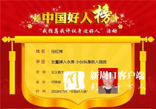 任紅偉,1980年12月生,太康縣王集鄉(xiāng)任莊村人。2017年4月15號(hào)下午4時(shí)許,任紅偉和愛(ài)人王國(guó)英、姐夫侯向東及姐姐王梅英帶著兩個(gè)孩子到小浪底西霞院水庫(kù)游玩。就在他們剛下車(chē)時(shí),突然看到在附近水庫(kù)玩耍的一個(gè)小女孩不慎落水,此刻任紅偉和愛(ài)人王國(guó)英急忙向落水的小女孩跑了過(guò)去。