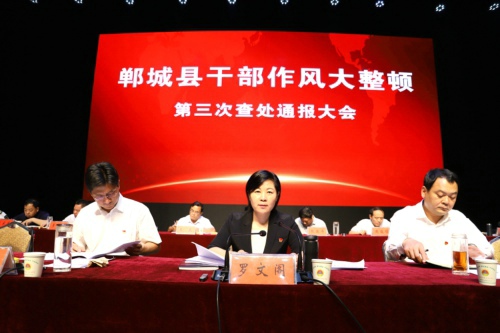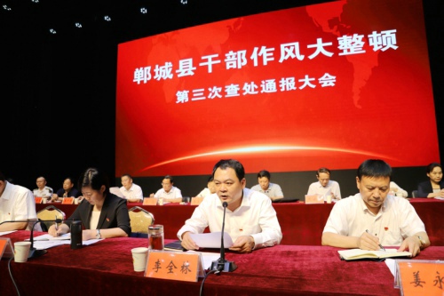 8月15日下午,鄲城縣召開干部作風大整頓第三次查處通報大會。貫徹全市干部作風大整頓查處通報會議精神和縣委十二屆四次全會暨縣委工作會議精神,通報典型案例,宣布處理決定,傳導工作壓力,夯實工作責任,為進一步推進各項工作任務落實、打好打贏脫貧攻堅戰(zhàn)提供堅強有力的作風保障??h委書記羅文閣發(fā)表講話,縣長李全林主持。全縣副處級以上領導干部和縣、鄉(xiāng)、村各級各部門負責人參會。