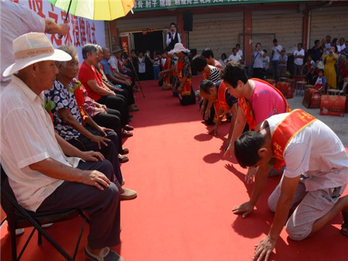 鄉(xiāng)長吳國鋒發(fā)表了熱情洋溢的致辭。他首先代表平店鄉(xiāng)黨委、政府、人大向受到表彰的先進模范和先進家庭表示熱烈的祝賀并致以崇高的敬意。并詳細闡述了開展“孝善敬老讓愛回家、孝賢之星表彰授牌暨解決獨居老年人問題、助力脫貧攻堅的重大意義,他希望受到表彰的先進代表和家庭要珍惜榮譽、再接再厲,繼續(xù)弘揚尊老、敬老、養(yǎng)老、愛老的傳統(tǒng)美德,推動全鄉(xiāng)“孝善敬老”文化不斷邁向新臺階?;顒蝇F(xiàn)場宣讀了《平店鄉(xiāng)人民政府敦促將被贍養(yǎng)人接入安全住房共同生活的通告》;與會領導為孝賢之家頒獎授牌;28個“孝子孝媳”在臺上統(tǒng)一施行叩拜大禮;活動結(jié)束后,鄉(xiāng)政府指派3名班子領導和10多名工作人員,分別乘坐6臺輛,由嗩吶隊開路,風風光光把28個老人送回了家。一路引來不少群眾駐足注目觀看,廣大群眾對此嘖嘖稱贊、拍手稱快。