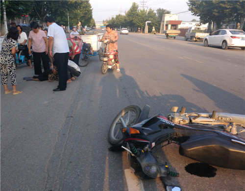 當日6時許,趙紅建在寧平鎮(zhèn)扶貧返回縣城行駛至金丹大道工業(yè)區(qū)段時,發(fā)現(xiàn)一輛摩托車倒在馬路中間,一位老人躺臥車邊,目測老人胳膊、腿部傷情較重。