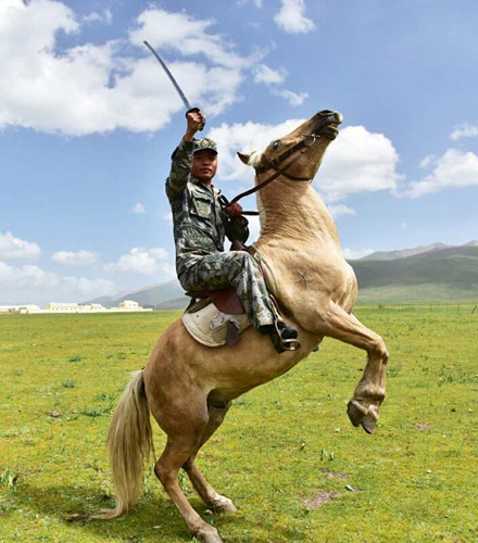 “一開(kāi)始就‘認(rèn)慫’,哪還有一點(diǎn)騎兵精神可言。”趙雪超暗自打氣。打那以后,趙雪超像根上緊的發(fā)條,和戰(zhàn)馬較上了勁。他晚上練劈刺,白天練馬術(shù)動(dòng)作,被馬一次次地摔下去,他拍掉身上的塵土又一次次地躍上馬背……就是憑借這股不服輸?shù)捻g勁, 3個(gè)月后,趙雪超的訓(xùn)練成績(jī)?cè)谶B隊(duì)名列前茅。