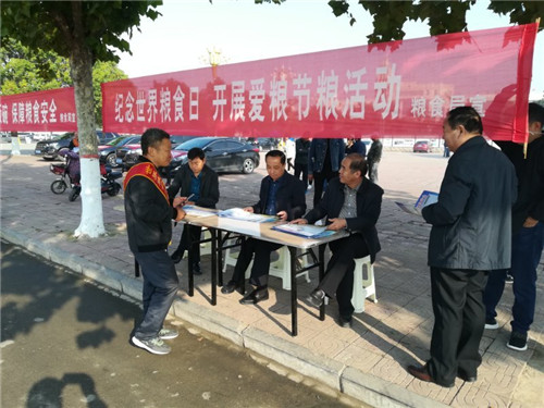 在世界糧食日當天,以縣糧食局為牽頭單位,在縣政府及局門口設(shè)立宣傳主會場,制作展板4塊,懸掛條幅32條,出動宣傳車6輛,數(shù)十名工作人員統(tǒng)一佩戴宣傳標語綬帶,為過往市民宣傳講解糧食安全知識,并接受全縣種糧大戶、合作社人員現(xiàn)場咨詢。當日,主會場共發(fā)放宣傳資料3000余份,讓廣大市民了解糧食安全、愛糧節(jié)糧、糧油選購、合理膳食等科普知識。