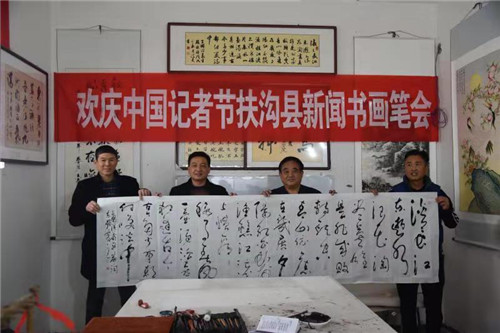筆墨寫春秋,重彩頌佳節(jié)。為慶祝第19個(gè)中國(guó)記者節(jié),在扶溝縣的張坡詩(shī)詞名人書畫館,來自省書法家協(xié)會(huì)的書法家與當(dāng)?shù)匦侣勑麄鞑块T的書畫愛好者們齊聚一堂,以舉行書畫筆會(huì)的形式向新聞媒體人慶賀節(jié)日。