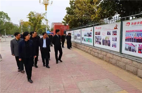 11月14日下午,鄲城縣委書記羅文閣等縣四個班子領導一行到縣世紀廣場共同觀看《決戰(zhàn)決勝---鄲城縣脫貧攻堅工作攝影》展。