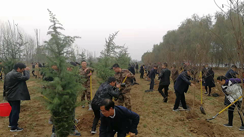 當(dāng)天下午雖然暖陽照射,但初冬的鹿邑大地仍是涼風(fēng)習(xí)習(xí)。不過這一點(diǎn)兒也沒有影響到大家的心情。一到植樹現(xiàn)場,梁建松、李剛等領(lǐng)導(dǎo)就和大家一起興致勃勃地拿起鐵鍬等工具忙碌起來,揮鍬鏟土,扶樹填土,澆水正苗,每道工序都做得認(rèn)真細(xì)致、一絲不茍。