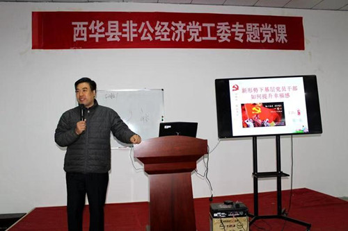 11月17日,西華縣非公黨工委邀請(qǐng)清華大學(xué)珠海教育中心EMBA國(guó)學(xué)講師徐一農(nóng)先生,為全縣百余名非公企業(yè)黨員集中上了一堂生動(dòng)的黨課。縣委組織部、縣非公黨工委有關(guān)領(lǐng)導(dǎo)、酷農(nóng)航空、縣電商產(chǎn)業(yè)園、遠(yuǎn)大鍋爐等40余家非公企業(yè)、個(gè)私協(xié)會(huì)黨支部參加了集中黨課。