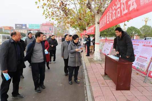 羅文閣一行邊走邊看,和工作人員認(rèn)真交談,詳細(xì)了解普法宣傳教育活動(dòng)開展情況。羅文閣指出,憲法是國家的根本法,是治國安邦的總章程,全縣上下要堅(jiān)持以習(xí)近平新時(shí)代中國特色社會(huì)主義思想為指導(dǎo),把憲法學(xué)習(xí)宣傳工作擺在當(dāng)前工作重要位置,深入開展以憲法為核心的法治宣傳教育,教育引導(dǎo)各級(jí)組織和全體公民牢固樹立憲法和法律意識(shí),在全社會(huì)營造濃厚的法制宣傳氛圍。要深入開展“法律六進(jìn)”,提高全民法律素質(zhì);要積極開展“民主法治村”“民主法治社區(qū)”創(chuàng)建活動(dòng);要繼續(xù)圍繞全縣脫貧攻堅(jiān)決策部署,開展法治宣傳教育助力精準(zhǔn)扶貧攻堅(jiān)活動(dòng);要加強(qiáng)法治文化建設(shè),營造法治文化氛圍;要注重優(yōu)化法律服務(wù)質(zhì)量,提升法律服務(wù)工作水平,切實(shí)維護(hù)群眾合法權(quán)益;要團(tuán)結(jié)奮進(jìn),開拓創(chuàng)新,扎實(shí)做好全面依法治縣各項(xiàng)工作,奮力開創(chuàng)新時(shí)代法治鄲城建設(shè)新局面。