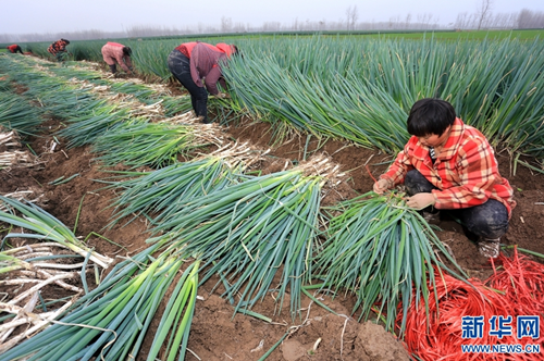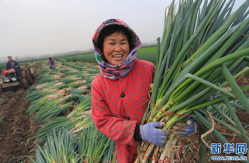 近年來,淮陽縣齊老鄉(xiāng)袁樓行政村大力發(fā)展特色種植,以“合作社+農(nóng)戶”的形式種植大蔥4000余畝,每畝增收14000余元,帶動(dòng)村里貧困人口35戶124人土地入股和就業(yè),其中已有25戶脫貧。通過發(fā)展種植大蔥,該村從以前人均不足2000元的貧困村變成如今人均達(dá)到1萬多元的小康村。新華網(wǎng)發(fā)(楊正華 攝)