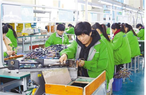 近年來,沈丘縣凱旺電子公司先后在石槽集鄉(xiāng)、馮營鎮(zhèn)、付井鎮(zhèn)等9個鄉(xiāng)鎮(zhèn)設(shè)立了27個扶貧車間,吸納了700多人就業(yè),其中包括160名貧困群眾,人均月工資為2000至3000元。圖為扶貧車間里的生產(chǎn)場景。