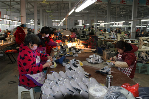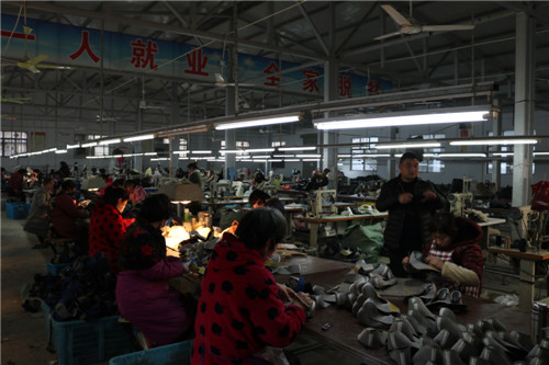 超琪鞋業(yè)是楊湖口鎮(zhèn)另一家以鞋面訂單加工為主、與上海東嘉鞋業(yè)合作的外貿(mào)出口企業(yè),年?duì)I業(yè)額達(dá)上千萬(wàn)。在該公司“扶貧車(chē)間”里,有30多名像秦梅英一樣分別來(lái)自楊湖口鎮(zhèn)周邊的貧困和非貧困村的貧困戶,對(duì)200多名留守婦女和貧困群眾進(jìn)行精準(zhǔn)幫扶,是有名的“巧媳婦工程”示范加工點(diǎn)。該鎮(zhèn)鎮(zhèn)長(zhǎng)劉新建說(shuō),超琪鞋業(yè)是全鎮(zhèn)產(chǎn)業(yè)精準(zhǔn)扶貧、帶貧行動(dòng)的一個(gè)縮影。楊湖口全鎮(zhèn)目前已發(fā)展有工業(yè)企業(yè)24家,養(yǎng)殖戶364戶,規(guī)模以上養(yǎng)殖企業(yè)17家,專(zhuān)業(yè)合作社116家。這些產(chǎn)業(yè)均以建檔立卡貧困村和貧困戶為幫扶對(duì)象,對(duì)貧困戶開(kāi)展免費(fèi)技能培訓(xùn),幫扶舉措有效解決貧困戶脫貧路上各種問(wèn)題,為貧困戶就業(yè)增收提供支持,讓這些陷入貧困卻不能改變生活面貌的農(nóng)村婦女有活干、有固定收入,能幸福生活。