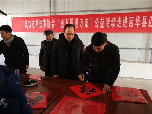 “‘迎新春走基層,進(jìn)萬家送萬?!顒?dòng)已連續(xù)開展多年,今年市書協(xié)持續(xù)開展,就是為了進(jìn)一步弘揚(yáng)傳統(tǒng)文化,普及書法知識(shí),助推扶貧攻堅(jiān),為周口這座文化名城建設(shè)作出應(yīng)有的貢獻(xiàn)?!敝芸谑袝鴧f(xié)主席王猛仁說。