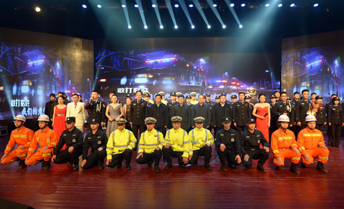 晚會現(xiàn)場,頒獎環(huán)節(jié)和文藝節(jié)目輪番呈現(xiàn),精彩紛呈。由32個民警子女上演的情景劇《天之大》,警寶們用稚嫩的聲音唱出了警察家庭的付出和他們對父母的愛,讓現(xiàn)場觀眾流下感動的淚水;最后一個頒獎環(huán)節(jié),當15名警嫂手捧鮮花獎杯走上舞臺為他們從警10年、20年、30年的愛人頒獎時,整個舞臺愛意濃濃。