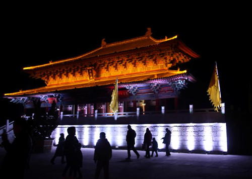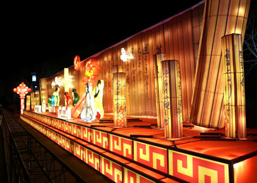 主題燈會老子布道、孔子問禮、武則天祭祖等造型與老子故里、人文鹿邑相得益彰,卡通肥豬為游客獻(xiàn)上一場憨厚的可愛形象,太極殿前日月潭內(nèi)青煙渺渺,在燈光的變化下讓人仿佛步入仙境,各個(gè)角落的樹木花草彩光熠熠,整個(gè)太清宮內(nèi)是光的海洋……
