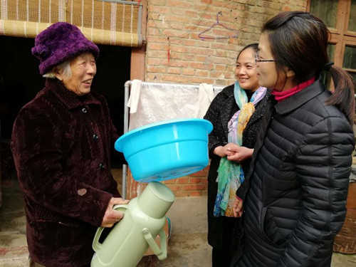 一個(gè)水瓶、一幅年畫足以溫暖一個(gè)村莊……1月26日,淮陽縣婦聯(lián)迅速落實(shí)縣委、縣政府“大走訪、大宣傳、大慰問”工作部署,駐村工作隊(duì)長(zhǎng)張健帶領(lǐng)第一書記、工作隊(duì)員和村兩委干部對(duì)大連鄉(xiāng)代廟村挨門逐戶進(jìn)行走訪慰問,把黨和政府的關(guān)懷送到尋常百姓家。
