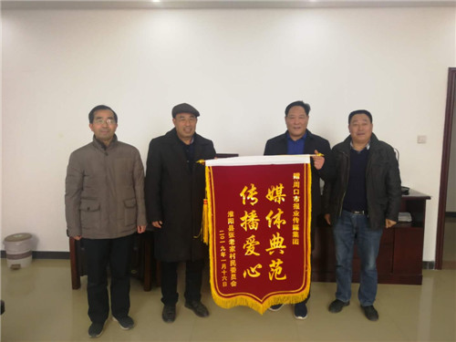 “傳播愛心,媒體典范”“為民解憂愁,心系千萬家”。1月25日上午,淮陽縣劉振屯鄉(xiāng)張老家行政村村支書張紀(jì)全專程趕到周口,給周口報(bào)業(yè)傳媒集團(tuán)、周口市啄木鳥志愿者服務(wù)工作委員會(huì)送來兩面錦旗,表達(dá)他們的感激之情(如圖)。