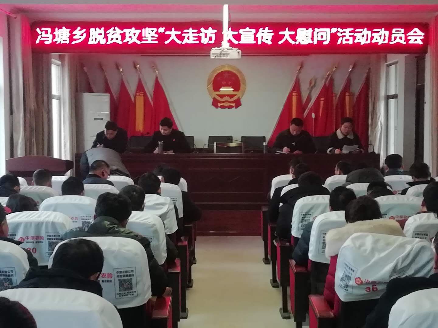 1月28日上午,淮陽縣馮塘鄉(xiāng)黨委、政府在鄉(xiāng)政府會議室召開全體鄉(xiāng)干部、駐村書記(隊長)、支部書記及信息員會議。會議就脫貧攻堅“大走訪、大宣傳、大慰問”活動、人居環(huán)境整治、農(nóng)戶改廁等工作進行專門部署。