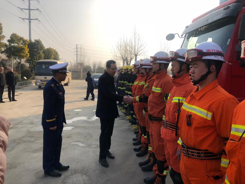 在開發(fā)區(qū)消防大隊(duì),王文峰與每一位消防隊(duì)員握手,詳細(xì)詢問(wèn)他們的工作、生活、學(xué)習(xí)情況。王文峰指出,2018年,開發(fā)區(qū)消防大隊(duì)牢記“聽(tīng)黨指揮,能打勝仗,作風(fēng)優(yōu)良”,努力訓(xùn)練,敢于戰(zhàn)斗,面對(duì)一系列急難險(xiǎn)重任務(wù)能夠拉得出、打得贏,為保障人民群眾生命財(cái)產(chǎn)安全作出了重要貢獻(xiàn)。新的一年,全市消防救援隊(duì)伍要繼續(xù)發(fā)揚(yáng)特別能吃苦、特別能戰(zhàn)斗的優(yōu)良傳統(tǒng),加強(qiáng)應(yīng)急救援綜合能力建設(shè),真正發(fā)揮好應(yīng)急救援主力軍和國(guó)家隊(duì)的職能作用。