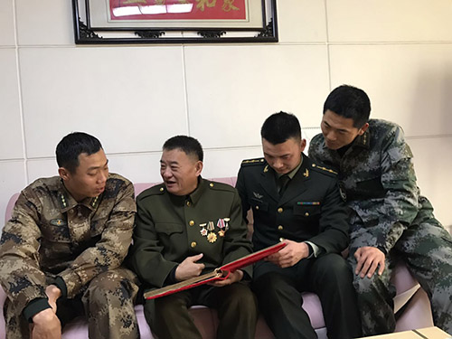 柳東坡、劉威、崔二偉3名年輕軍官聽完老英雄的講述后心靈受到極大震撼,一度落下激動(dòng)地淚花。他們向海水干匯報(bào)了各自在部隊(duì)立功受獎(jiǎng)的情況?!皬?qiáng)軍先鋒”柳東坡現(xiàn)為80集團(tuán)軍某旅副營(yíng)長(zhǎng),在斯洛伐克國(guó)際特種兵比武、中俄聯(lián)演以及全軍特種兵比武中表現(xiàn)優(yōu)異,先后榮立一等功、二等功各一次,三等功3次;“天山兵王”劉威現(xiàn)任新疆軍區(qū)某團(tuán)副連長(zhǎng),在國(guó)際軍事比賽、軍區(qū)偵察兵比武中脫穎而出、成績(jī)顯著,入伍來先后榮立一等功、二等功各一次,三等功2次;“狙擊神槍手”崔二偉曾被總參謀部表彰為“全軍優(yōu)秀狙擊手”,先后榮立一等功、二等功各一次。