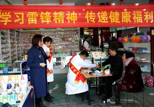 西華縣北華醫(yī)藥黨支部組織黨員志愿者為群眾量血壓、測血糖,免費發(fā)放鈣片、提供茶水等義務(wù)服務(wù)活動。