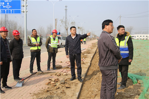 3月10日上午,周口港區(qū)黨委書記孫紅偉到轄區(qū)檢查環(huán)保措施落實情況和綠化工程施工進度,港區(qū)黨委委員杜廣賢、張東立陪同。