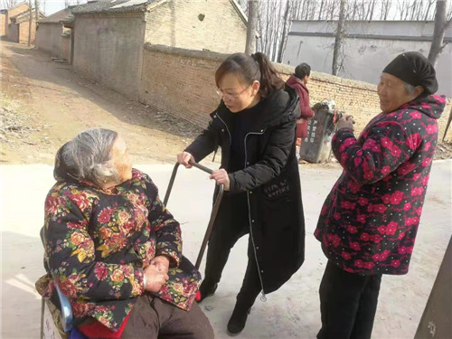 鏗鏘扶貧路,拳拳民生情。林娜加班加點(diǎn),扎實(shí)的作風(fēng)不僅有效推動(dòng)了幫扶工作的順利推進(jìn),而且也換來了當(dāng)?shù)卮迕竦摹包c(diǎn)贊”。為推進(jìn)老人戶合吃合住問題,林娜三番五次去做工作,段屯行政村于樓村86歲的老人王全英,年邁不能自理,遭兒子嫌棄,3個(gè)兒子都不愿贍養(yǎng)老人。一次,陰雨天,老人不慎跌倒,摔傷胳膊,兒女們都不管不顧,林娜在走訪的過程中了解情況后,立即幫老人買來膏藥貼上,同時(shí)開始做兒女的思想工作,“家有一老似有一寶,孝親愛老是中華民族的傳統(tǒng)美德”,經(jīng)過林娜再三做思想工作,三個(gè)兒子茅塞頓開,愿意贍養(yǎng)老人,最終老人在三個(gè)兒子家輪流吃住。在林娜及隊(duì)員的共同努力下,段屯行政村不僅老人戶全部合戶,而且在全村掀起了爭(zhēng)做賢孫孝媳的局面。一名老黨員袁士成,每次見了工作隊(duì)都豎起大拇指說:“兒女好,兒女好,兒女再好不如共產(chǎn)黨對(duì)俺好”。