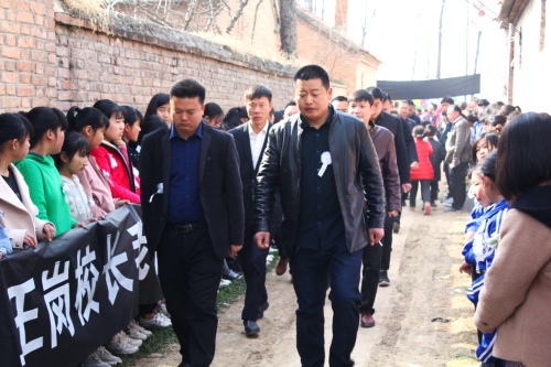 院內(nèi)正廳上方,懸掛著黑底白字的橫幅“沉痛悼念王崗?fù)尽?,院外道路兩?cè),擺滿了人們敬獻(xiàn)的黑紗、花圈。市教體局領(lǐng)導(dǎo)來了,縣政府副縣長肖煒來了,縣教體局局長劉現(xiàn)營來了;局黨組成員、各鄉(xiāng)校校長來了,王崗最愛的學(xué)生、同事來了;學(xué)生家長也來了……大家胸佩白花,向這位愛崗敬業(yè)的基層校長表示崇高的敬意和深切的哀悼。
