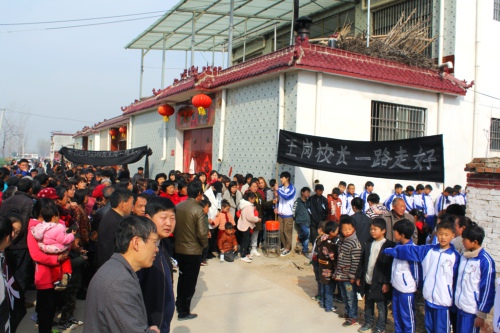 “教育師魂鑄就止步盛年悲矣,杏壇大愛揮灑平民風(fēng)范偉哉!”3月24日上午,鄲城縣東風(fēng)鄉(xiāng)鄭莊行政村大王莊一個(gè)普通的農(nóng)家院內(nèi)外,挽幛輕垂,哀樂低回。數(shù)千名師生、群眾自發(fā)前來送別年僅37歲的該村小學(xué)校長王崗。