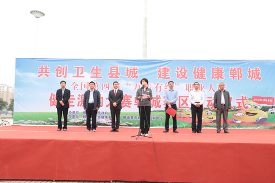 5月15日上午,鄲城縣在世紀廣場隆重舉行以“共創(chuàng)衛(wèi)生縣城建設健康鄲城”為主題的全國第四屆“萬步有約”職業(yè)人群健走激勵大賽鄲城賽區(qū)啟動儀式??h政府副縣長肖煒,縣政府辦副主任楊培爭,縣衛(wèi)健委主任付登霄、副主任禹廣民,縣疾控中心主任張吉志等出席啟動儀式。楊培爭主持啟動儀式。