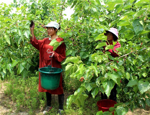 五月,正是桑椹成熟的季節(jié)。在河南益品椹業(yè)有限公司桑椹采摘園里,那鮮紅欲滴、紫黑透亮、又大又甜的桑椹果壓彎了枝頭,一嘟嘟,一串串,甚是好看。