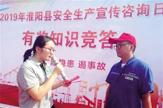 6月14日,淮陽(yáng)、鹿邑、西華等地相繼舉辦安全生產(chǎn)宣傳咨詢(xún)?nèi)?、公眾開(kāi)放日活動(dòng)。緊接著,6月17、18日,太康、鄲城、項(xiàng)城、沈丘相繼舉辦安全生產(chǎn)宣傳咨詢(xún)?nèi)蘸蛻?yīng)急救援演練等一系列形式多樣、豐富多彩的活動(dòng),全市各地聯(lián)動(dòng)掀起了“安全生產(chǎn)月”活動(dòng)高潮。