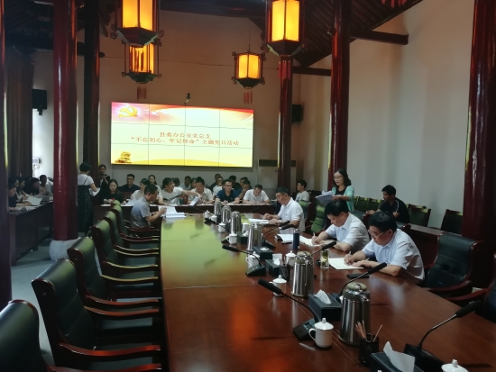 6月25日下午,鹿邑縣委辦公室黨總支開展“不忘初心、牢記使命”主題黨日活動??h委書記梁建松,縣委常委、辦公室主任侯自峰以普通黨員身份參加活動,并帶頭繳納了黨費(fèi)。縣委辦公室常務(wù)副主任、黨總支書記胥茂森主持主題黨日活動??h委辦公室全體黨員參加活動。