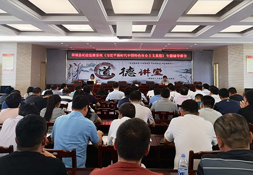 為進一步推動鄲城縣紀檢監(jiān)察干部深入學習貫徹黨的十九大精神,自覺用“習近平新時代中國特色社會主義思想”武裝頭腦、指導實踐、推動工作,按照全縣紀檢監(jiān)察系統(tǒng)“鑄鐵軍、塑形象、再出發(fā)”活動計劃安排,6月28日,鄲城縣紀委邀請縣委黨校教員鄭紅霞為全縣紀檢監(jiān)察干部做了一場“習近平新時代中國特色社會主義思想”專題輔導報告。