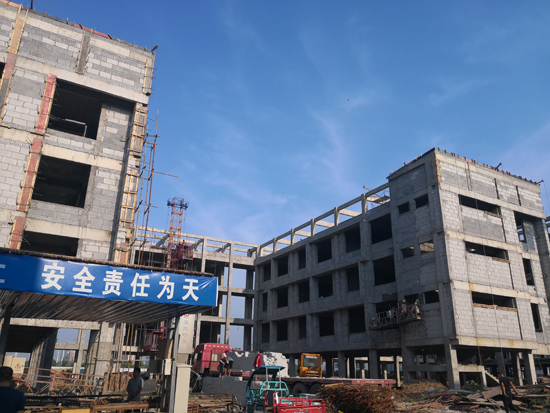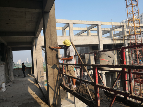 當日上午,記者在施工現(xiàn)場看到,雖然天氣炎熱,但是每項工程都進展有序,部分已經(jīng)封頂?shù)臉欠空谶M行后續(xù)施工,未封頂?shù)臉欠恳舱诰o張施工中,整個施工現(xiàn)場電鉆聲、切割聲此起彼伏,一派熱烈的施工景象。