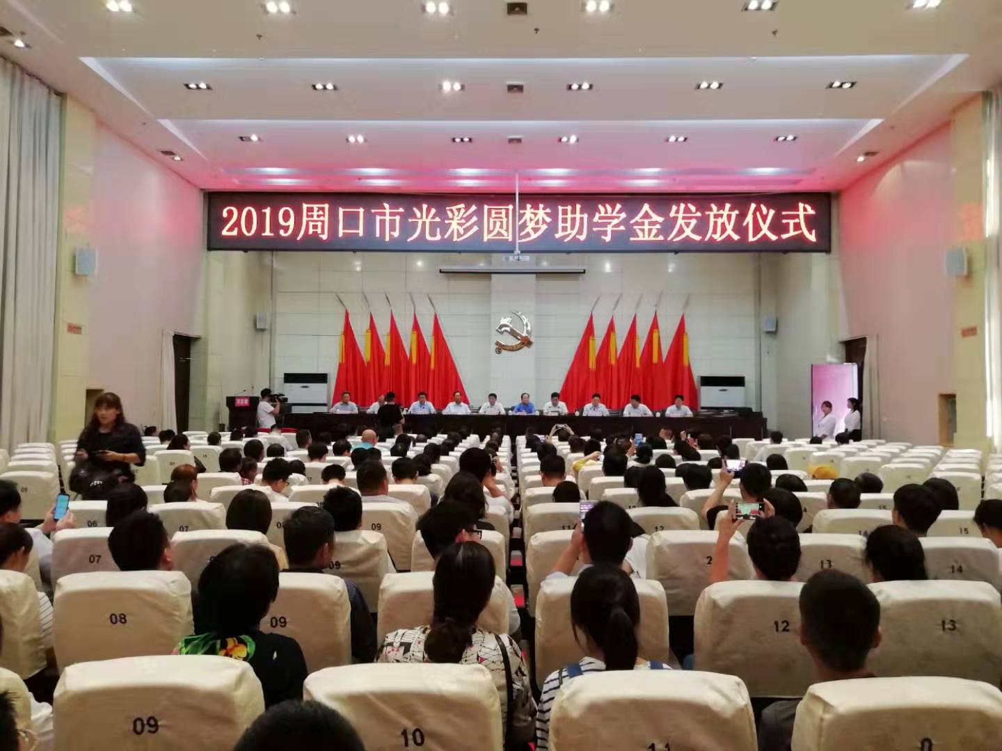 8月30日上午,2019年周口市“光彩圓夢”助學(xué)金發(fā)放儀式在川匯區(qū)舉行。市政協(xié)副主席、市工商聯(lián)主席趙萬俊,老領(lǐng)導(dǎo)李紹彬、白明寬,市委統(tǒng)戰(zhàn)部副部長、市工商聯(lián)黨組書記李飛,川匯區(qū)區(qū)委書記李宗喜,市工商聯(lián)副主席、周口市商會黨委書記徐公俊,市扶貧辦副主任程衛(wèi)東,川匯區(qū)區(qū)委常委、統(tǒng)戰(zhàn)部長宋煜及市直、區(qū)直有關(guān)單位負責(zé)同志出席儀式。
