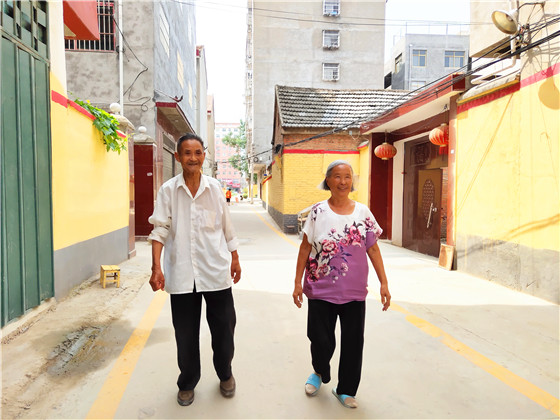 “我88(歲)了、她81(歲)了,四代同堂,在這住一輩子了。現(xiàn)在是最漂亮、最干凈的時候了。俺兩口都是監(jiān)督員,感謝黨哩政策好呀?!痹谙那f社區(qū)居住的建筑公司退休工人張守振和老伴王秀榮滿心歡喜地感黨恩、樂享幸福生活。