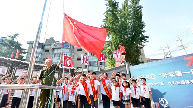9月4日,“我和我的祖國(guó)”天津市青少年慶祝中華人民共和國(guó)成立70周年示范活動(dòng)暨“我與祖國(guó)共奮進(jìn)──國(guó)旗下的演講”主題隊(duì)日活動(dòng)在和平區(qū)萬(wàn)全小學(xué)舉行。