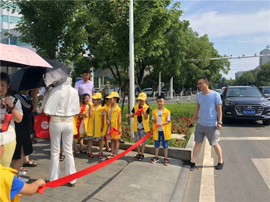 “叔叔,這個框子不能擺在路邊哦,垃圾也要倒在垃圾桶里,我給您發(fā)一個文明倡議書,您看一下”,“奶奶,不能橫穿馬路喲,紅燈停,綠燈行,要注意交通安全喲”......7月20日,35名小小志愿者來到古城社區(qū),參加古城社區(qū)小太陽志愿服務(wù)隊(duì)創(chuàng)文主題活動。一個個身穿黃色馬甲的小小身影成為馬路上一道靚麗的風(fēng)景線。