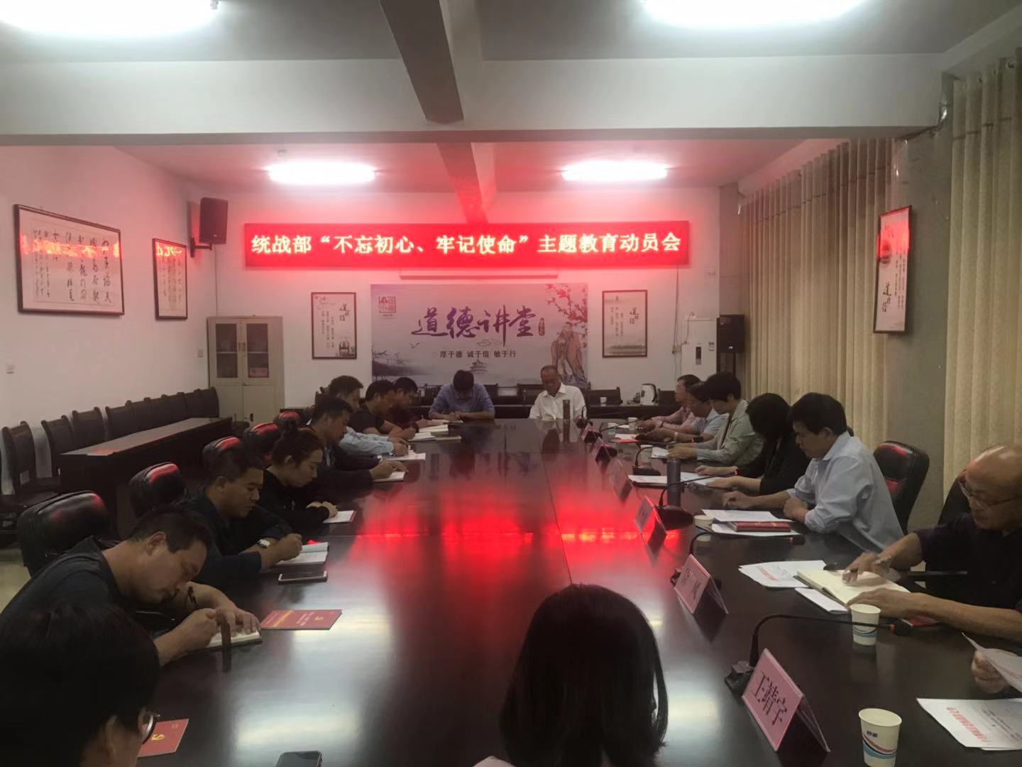 會議要求,準(zhǔn)確把握根本任務(wù)和目標(biāo)要求,緊緊圍繞主題教育的總要求和目標(biāo)任務(wù),嚴(yán)格按照省、市、縣統(tǒng)一部署,找準(zhǔn)開展主題教育的著力點(diǎn),在推動統(tǒng)戰(zhàn)中心工作上下功夫,將開展主題教育走深走實(shí)。