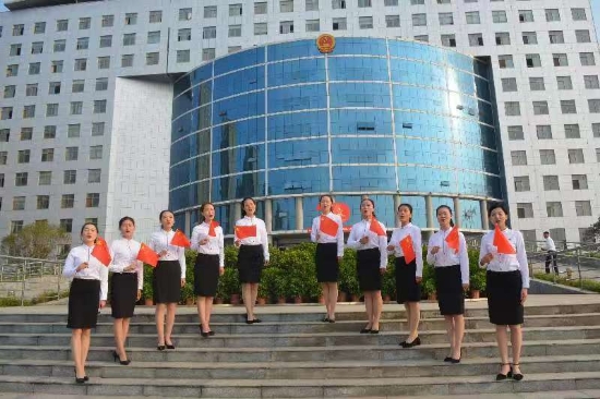 我和我的祖國一刻也不能分割,無論我走到哪里都留下一首贊歌,我歌唱每一座高山,我歌唱每一條河……嘹亮的歌聲在開發(fā)區(qū)辦公樓前的小廣場久久回蕩。