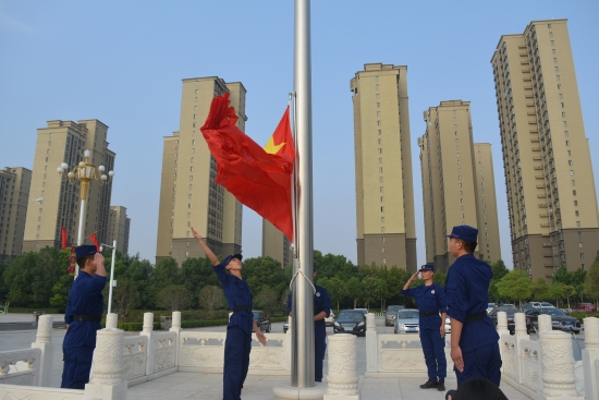 開發(fā)區(qū)黨委班子成員和大家一起齊聲高唱國歌,在清晨的曙光中,升起五星紅旗。