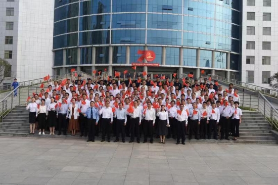 隨后,開發(fā)區(qū)黨委班子成員、開發(fā)區(qū)中層干部、普通黨員代表、教師黨員代表、消防隊員等200多人手執(zhí)國旗,齊聲合唱《我和我的祖國》《團(tuán)結(jié)就是力量》等歌曲,展示開發(fā)區(qū)人昂揚(yáng)向上的精神風(fēng)貌,熱烈慶祝新中國成立70周年。