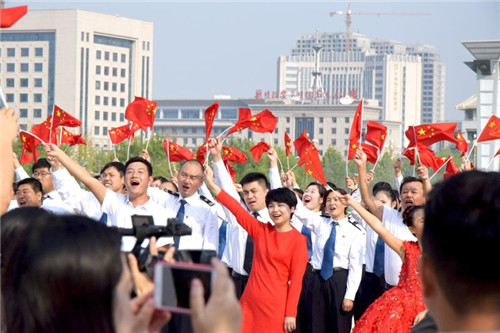 “我和我的祖國(guó),一刻也不能分割,無論我走到哪里,都流出一首贊歌……”9月29日上午,由市委宣傳部、市直機(jī)關(guān)工委主辦,周口報(bào)業(yè)傳媒集團(tuán)、周口廣播電視臺(tái)承辦的“學(xué)習(xí)強(qiáng)國(guó)——我和我的祖國(guó)”快閃活動(dòng)在和諧廣場(chǎng)舉行。來自市財(cái)政局、市城管局、市人民檢察院、市交通運(yùn)輸局、周口職業(yè)技術(shù)學(xué)院等市直單位近400人通過快閃形式歌唱祖國(guó),喜迎中華人民共和國(guó)成立70周年。