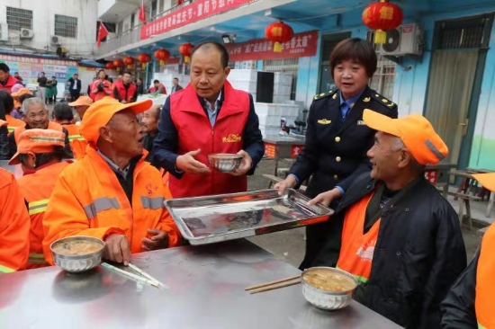 當(dāng)日凌晨5時許,太康縣愛心早餐點人頭攢動,熱鬧非凡,一輛裝滿新鮮蔬菜的大貨車停放在院中,20多名城管志愿者在太康縣城管局局長張愛梅的帶領(lǐng)下正從車上往下卸蔬菜。聽說愛心企業(yè)要為環(huán)衛(wèi)工捐贈蔬菜,太康縣委常委、統(tǒng)戰(zhàn)部長張新棟也放棄節(jié)日休息,天不明趕到太康愛心早餐點,加入到蔬菜裝卸行列?!肮?jié)日里,縣領(lǐng)導(dǎo)也不忘過來看望我們環(huán)衛(wèi)工,真讓人感動啊。”看著張新棟、張愛梅等人忙前忙后卸蔬菜,臉上浸滿了汗珠,環(huán)衛(wèi)工張大爺?shù)热藙忧榈卣f,“社會上有這么多好人關(guān)心我們環(huán)衛(wèi)工,我們再苦再累也值了!”