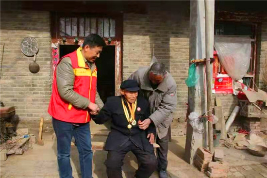 趙隆成是衡霞光走訪的第一名老兵。老人1925年出生,高賢鄉(xiāng)聚臺(tái)崗行政村人,16歲加入中國共產(chǎn)黨,1943年開封戰(zhàn)役中腳跟受傷,行動(dòng)不便?!肮伯a(chǎn)黨好,共產(chǎn)黨的干部們好啊?!?得知來訪, 老人拉住衡霞光的手激動(dòng)地說。