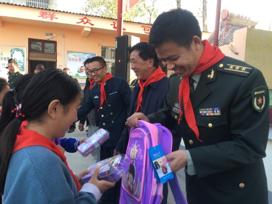 金秋時(shí)節(jié),碩果飄香。10月27日下午,川匯區(qū)人民武裝部在城北辦事處邵寨行政村舉行扶貧愛心助學(xué)活動(dòng),為全村155名少年兒童送來書包、文具盒等學(xué)習(xí)用品。