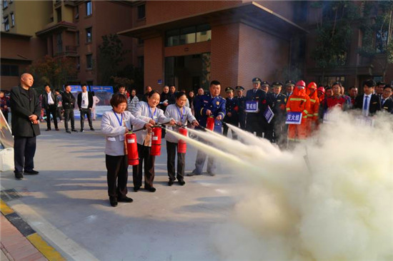 當(dāng)日下午,高磊向參會(huì)人員演示并講解了滅火器的使用方法,并現(xiàn)場(chǎng)邀請(qǐng)社區(qū)干部和物業(yè)公司相關(guān)負(fù)責(zé)人員實(shí)際體驗(yàn)滅火器的使用。隨后,在建業(yè)森林半島小區(qū)開(kāi)展了消防演練活動(dòng)。